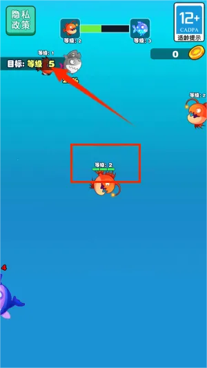 3、通过持续吞食场景中游动的其他鱼类生物,促使自身不断成长进化,屏幕顶端设有实时显示进化程度的进度条。