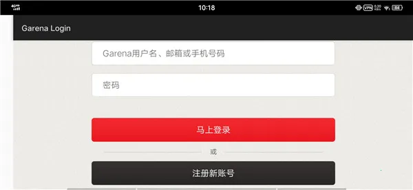 1、进入游戏会提示登录,有账号可直接登录。注册账号点击左边的【Garena登入】,这个比较方便一些。