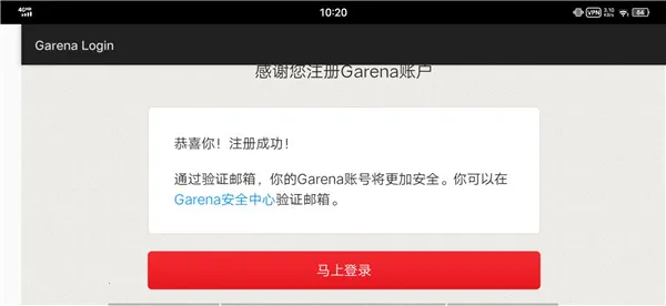 5、然后就会提示你注册成功点击下方的【马上登录】去登录游戏账号。