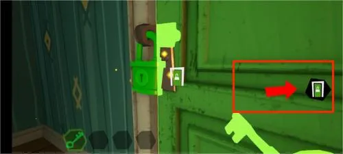 2、正式开局后操纵角色移动至房门附近,通过交互按键获取悬挂在门边的关键钥匙。