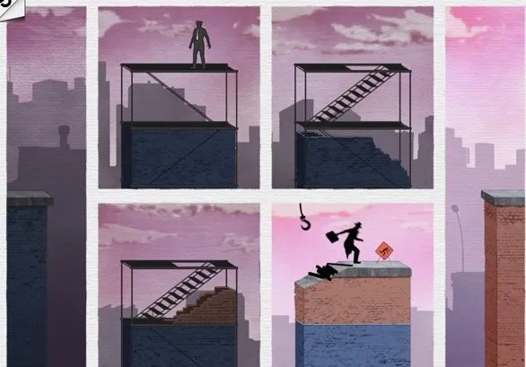 按照下图所示的致命框架攻略移动插画的位置,这样主人公便可以顺利躲过警察的追捕并且借助左下角图片上的钩子滑到最后一幅图上,避开那些讨厌的木棍。