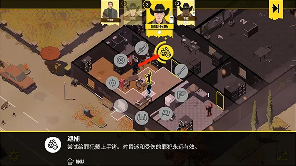 12、手铐对昏迷和受伤的罪犯永远有效,依次对所有罪犯进行逮捕后,即可完成当前任务,