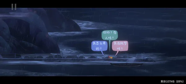 3、经过一段剧情动画后,你(莱利)醒来在一个陌生的海口,选择出现的选项气泡,了解现在的情况。