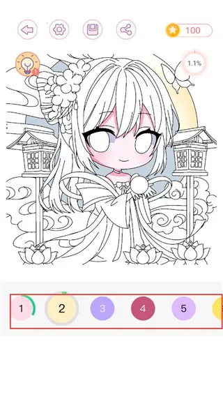 7、这里可以看当前背景涂色的完成进度。