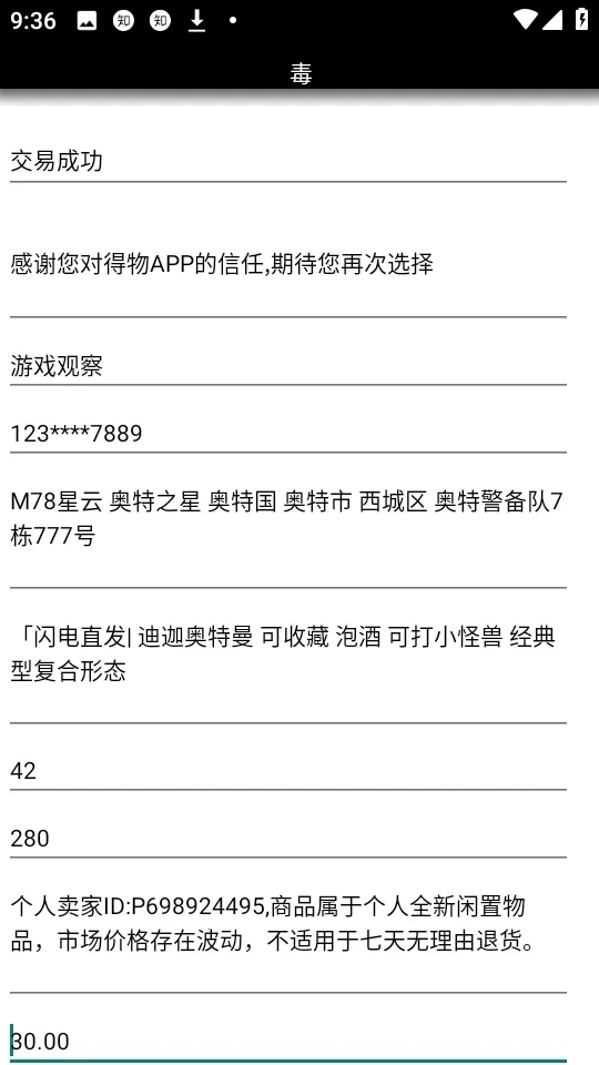 得物订单生成器最新手机版可自定义输入订单内容,一键生成无水印且界面真实的假订单图,能分享至朋友圈恶搞。有默认配置选项,支持一键保存,生成图片以假乱真,免费使用,界面友好操作便捷。