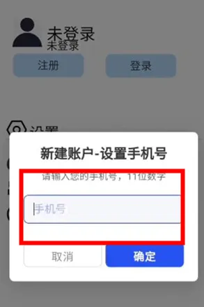 点击新建账户-设置手机号码;