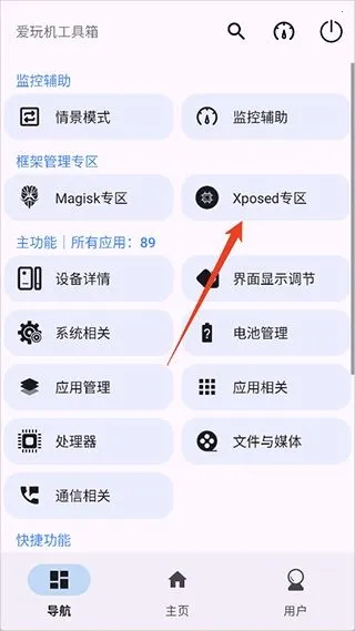 2、然后进入爱玩机工具箱app中点击【xposed专区】